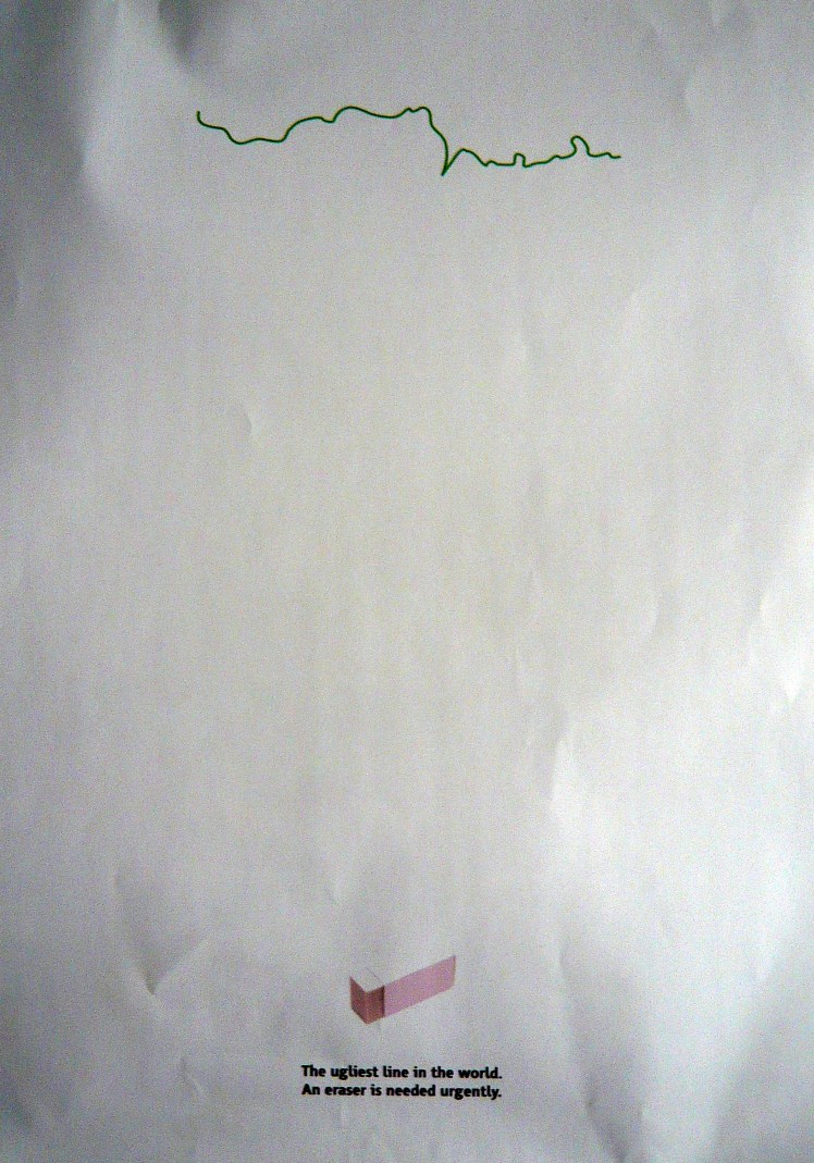This is, indeed, the ugliest line in the world that urgently needs an eraser. I saw this poster in the offices of CCMC, the Cyprus Community Media Center, a multi-communal NGO located in the Buffer zone in Nicosia.